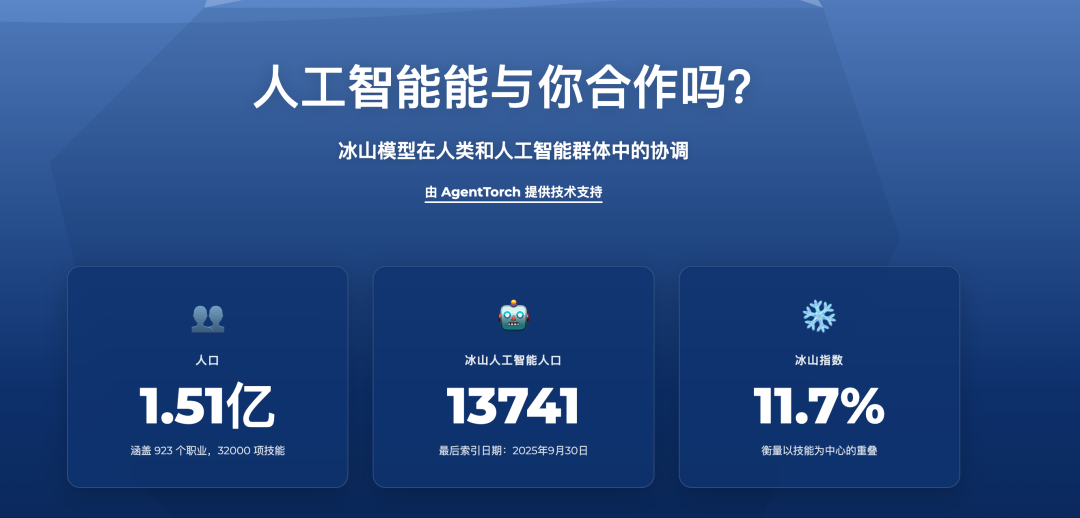 如果说哈佛的研究揭示了“不再招聘”的趋势,那么麻省理工学院(MIT)最近发布的“冰山指数(Iceberg Index)”,则揭示了这场冲击的广度。