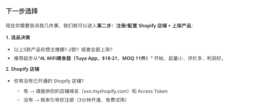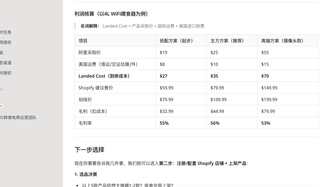 给出选品建议,并生成商品方案 -