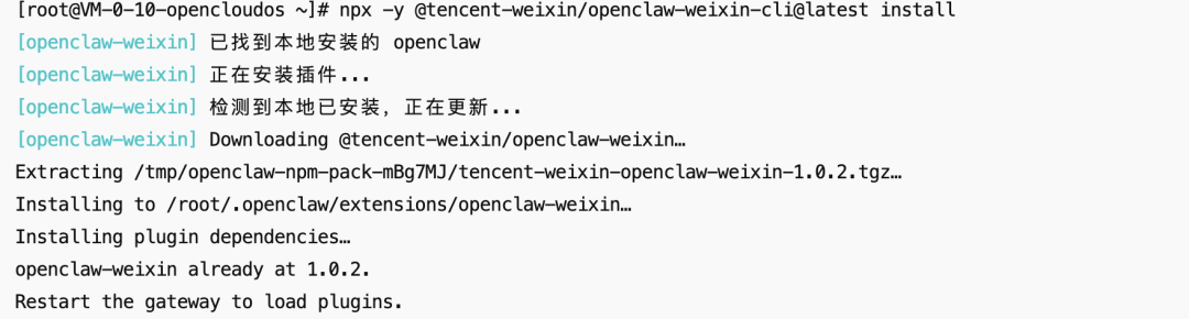 npx -y @tencent-weixin/openclaw-weixin-cli@latest install