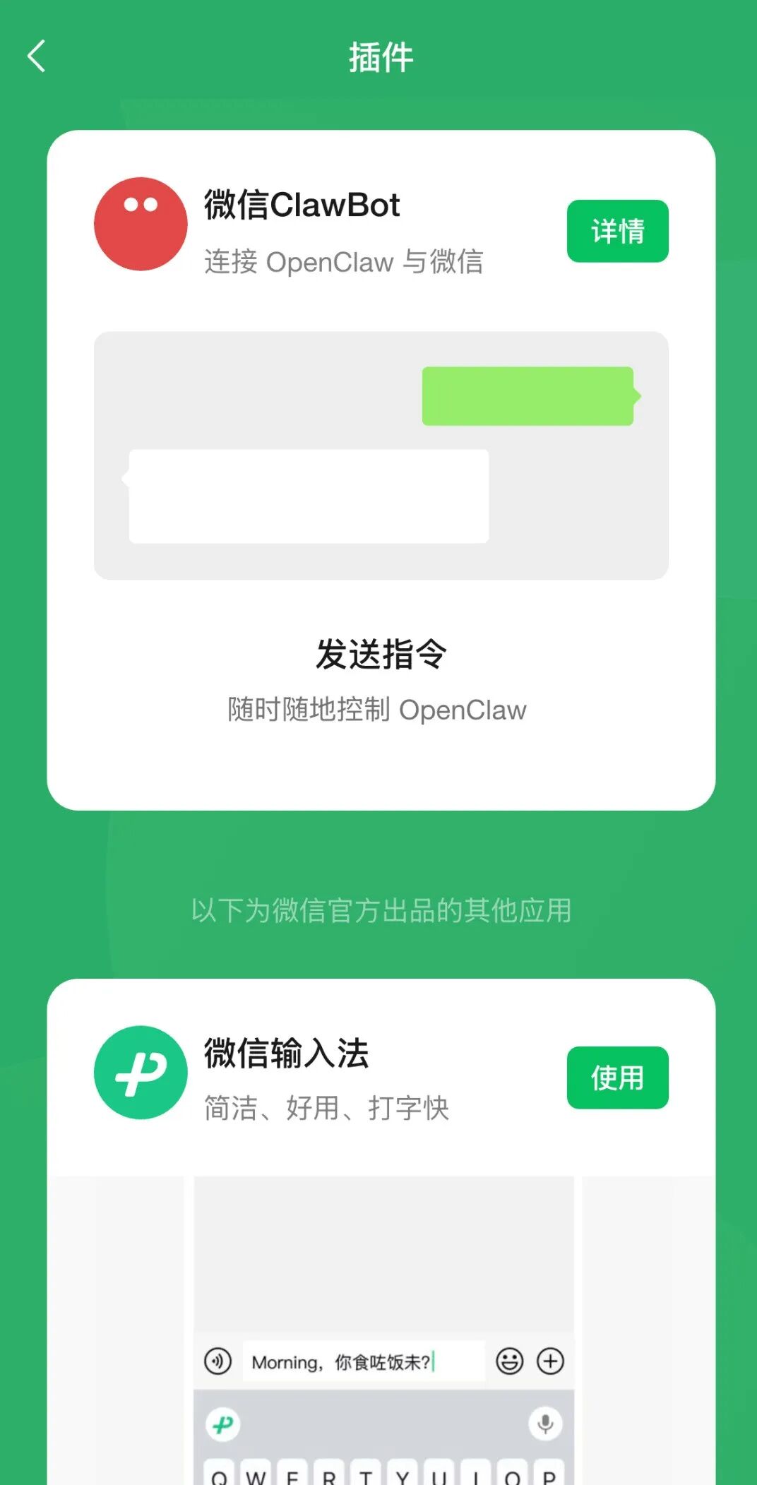 刚刚,微信正式放出了ClawBot(小龙虾)插件入口。
